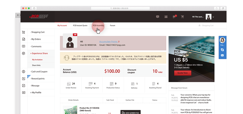 Next, you need to upload the PCB file, BOM list and pick & place file to the order. Our PCB assembly engineer will review the files within 48 hours and update the accurate price in the order. At last, the sales will send the complete quotation to your email. Finally, if you confirm the quotation, please make payment and it will be successfully to place an assembly order in PCBGOGO.