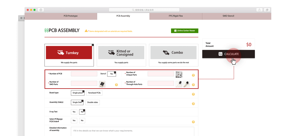 Firstly, Select the PCB Assembly calculator from the PCBGOGO the below Page or within your registered account then select option “PCB Assembly”. This option is also available through the PCBGOGO navigation bar.